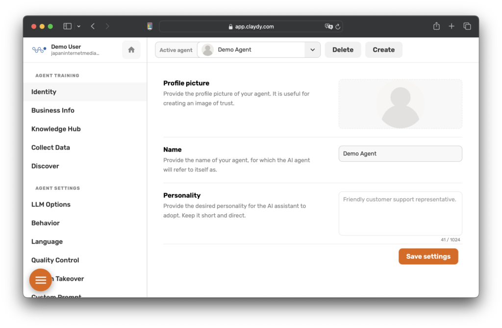 في إعدادات الهوية، ستجد العديد من الحقول التي تسمح لك بصياغة هوية فريدة لوكيلك. سيتم تخزين المعلومات التي تدخلها واستخدامها من قبل الوكيل ، مما يضيف لمسة شخصية إلى التفاعلات.